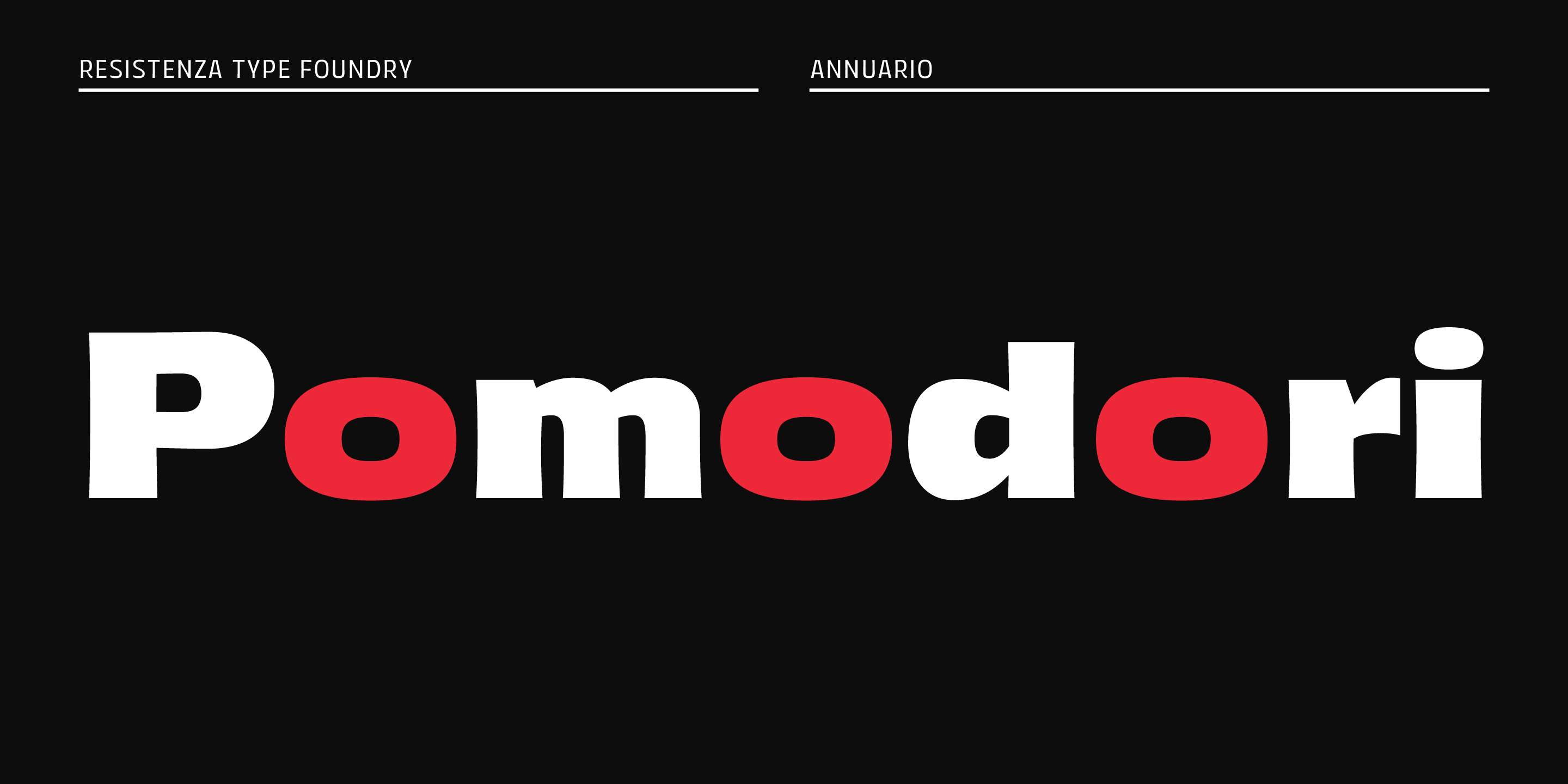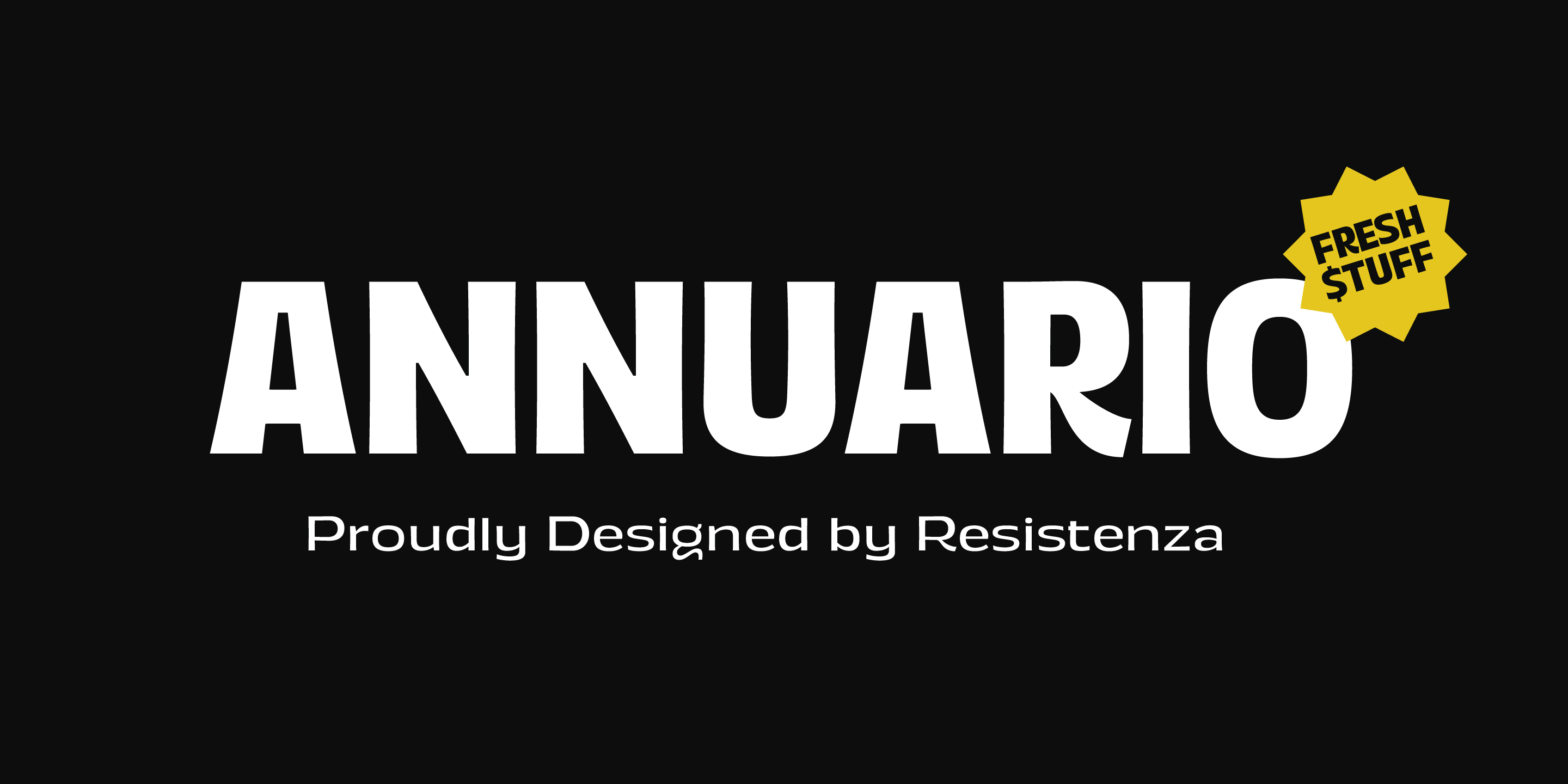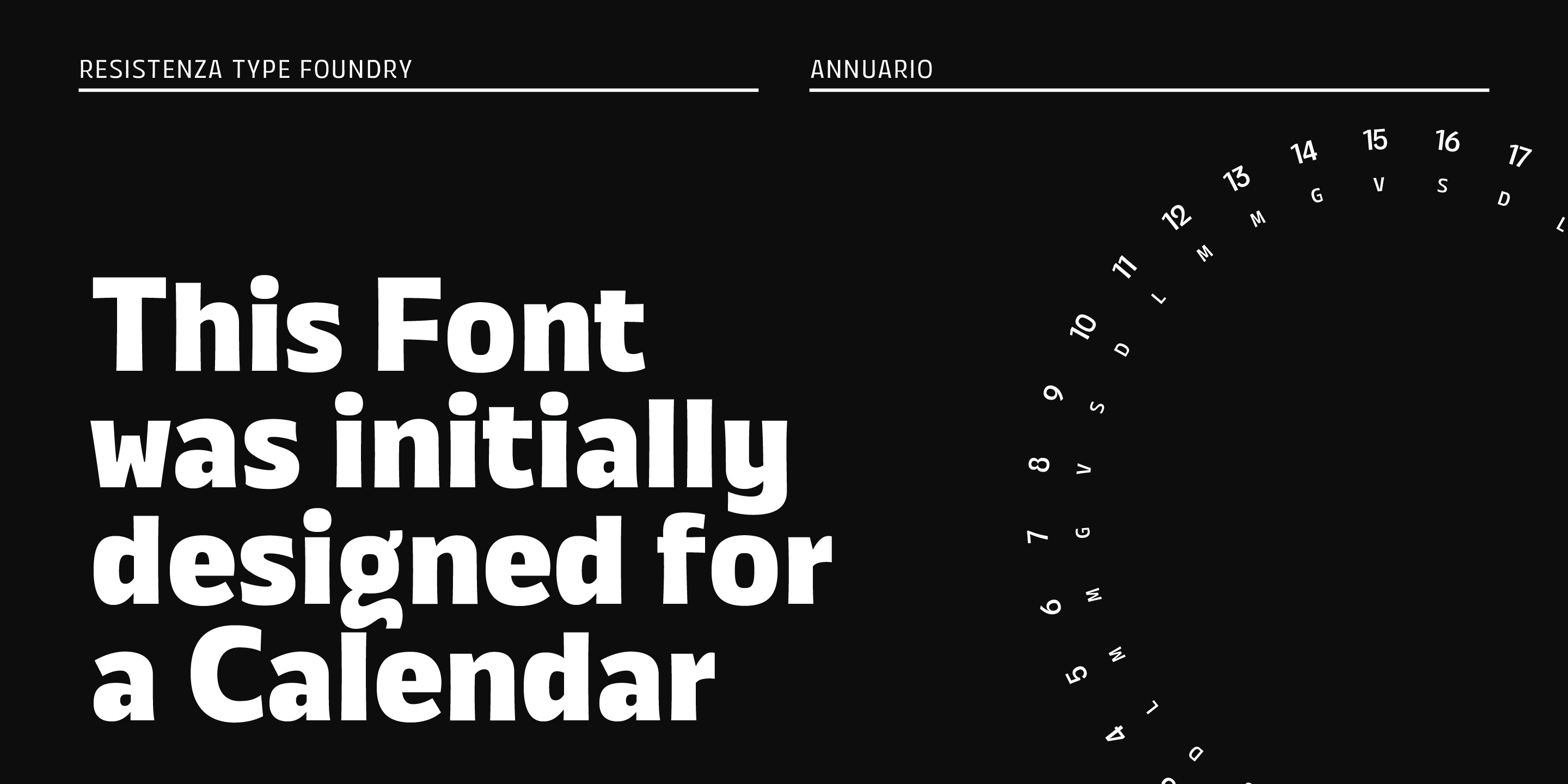 Designed by Resistenza Type FoundryAnnuario is a sans serif multi-weight font family initially designed for a calendar. 48 fonts with 2 axes, a flexible family for many purposes.