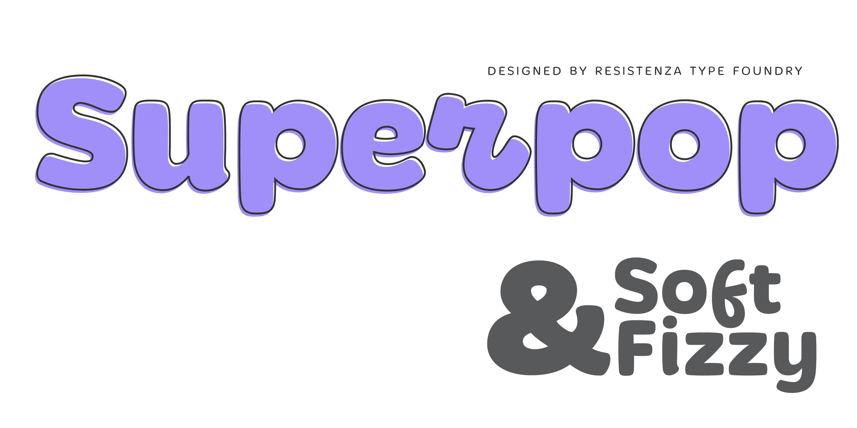 Designed by Resistenza Type FoundrySuperpop is sweet and gentle, a rounded geometric sans with a brushy script twist. Soft and refreshing like a soda, this font gets fizzy when geometric letterforms get mixed with script shapes you wouldn’t expect in a Sans Serif. A display family with two styles ( regular and italic ), 5 weights and an outline version for each style.