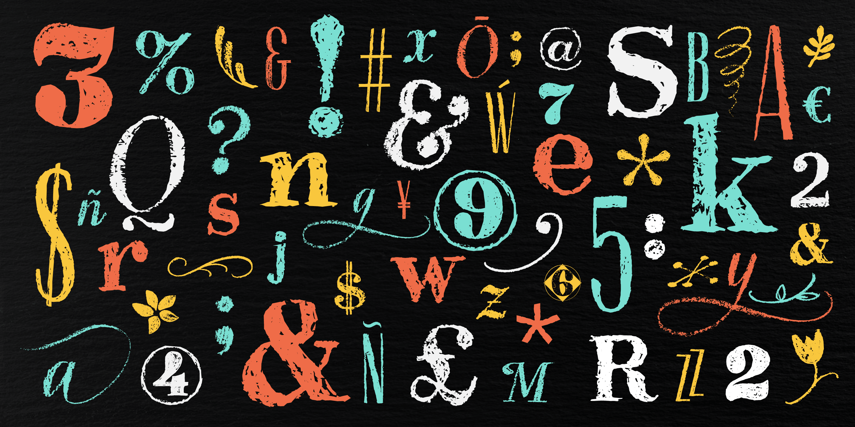 Style: Chalkboard font family (script, sans, roman, ornaments)