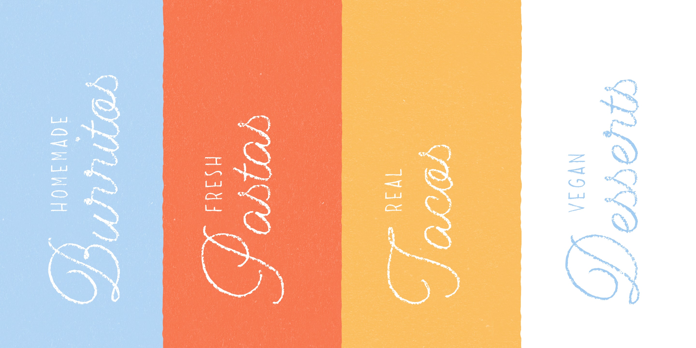 This font was designed with crayons on paper to get the rough effect of chalk writing.