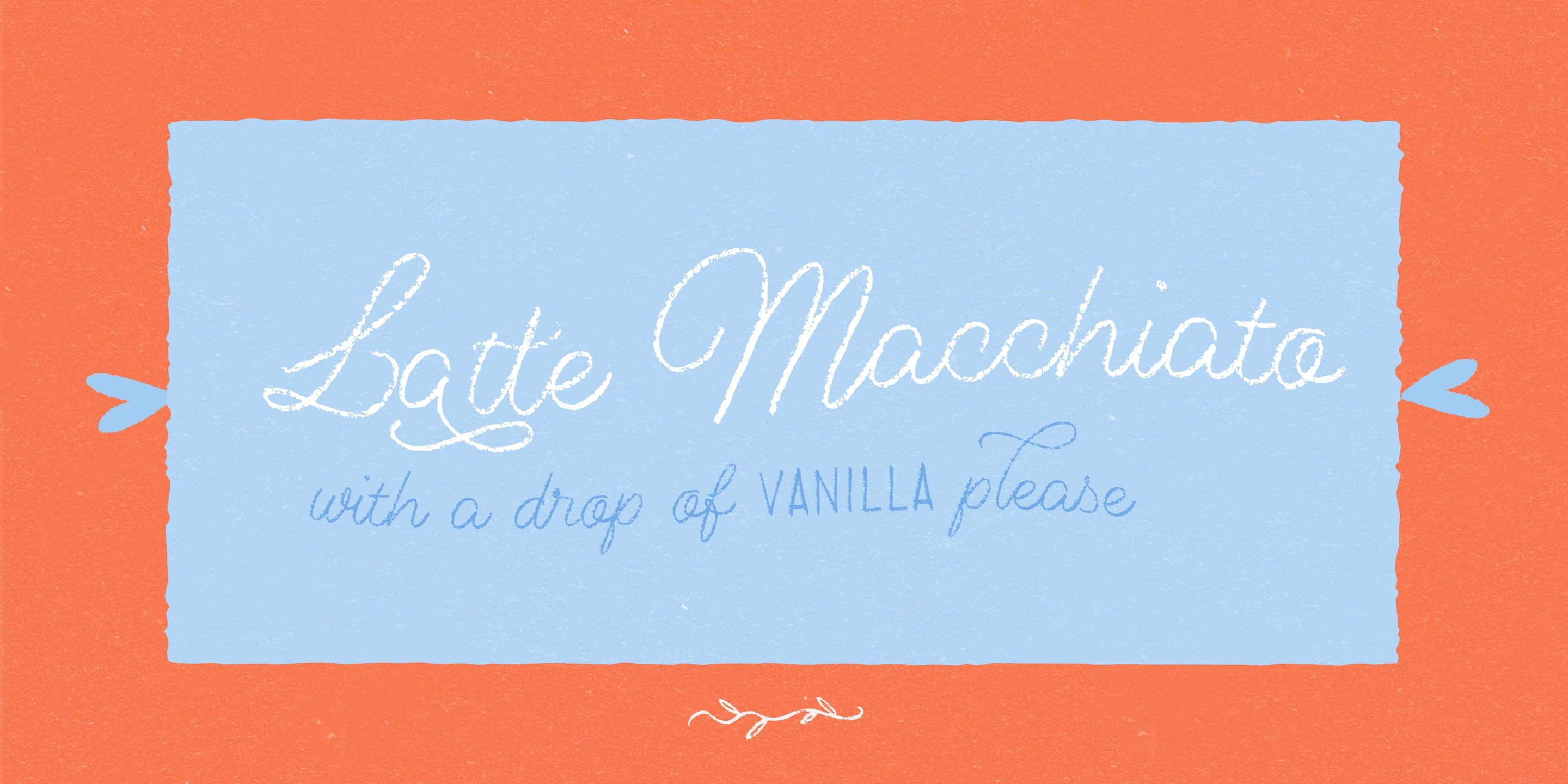 Designed by Resistenza Type FoundryWe are glad to introduce a chalk version of our Dolce Caffè font with a upright Script and Extras, containing swashes, ornaments and icons.