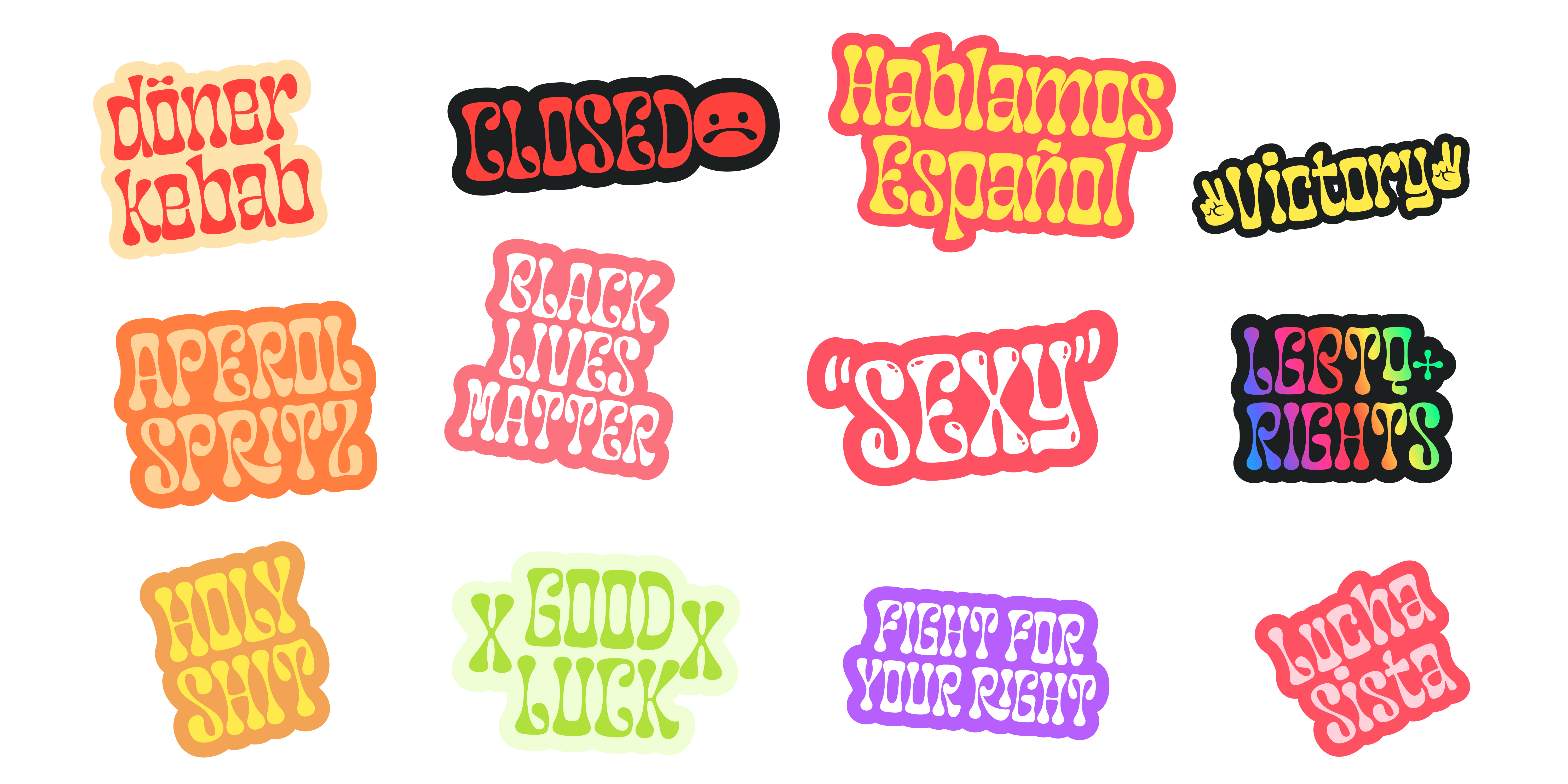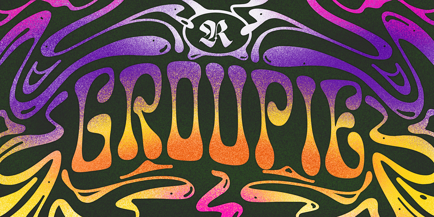 Designed by Resistenza Type FoundryThe idea was to mix liberty lettering with 70’s psychedelic posters and dedicate a font to Groupies. Check out the alternative glyphs and icons included on the opentype panel.