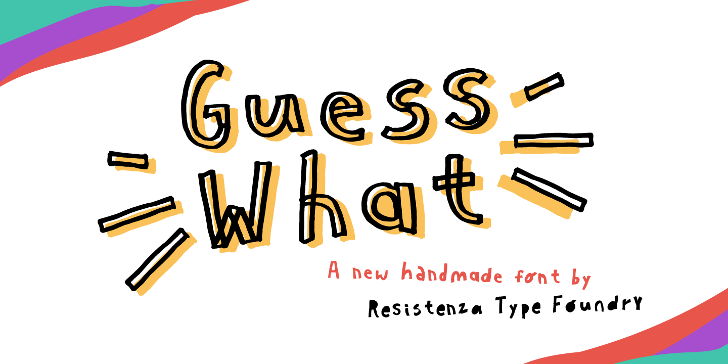 Designed by Resistenza Type FoundryGuess What? A new hand-drawn font family has arrived! 5 different sets of letters were sketched using a felt tip marker on paper to get a realistic handmade feeling. The magic comes activating the Opentype features, the letters will randomly combined by an advance code creating a more human feeling. More than 1500 glyphs available to customise your text. Works perfectly for many purposes adding a casual natural mood to the text. Try it on a book cover, digital ads, kids stuff, comics, branding, advertising, packaging...