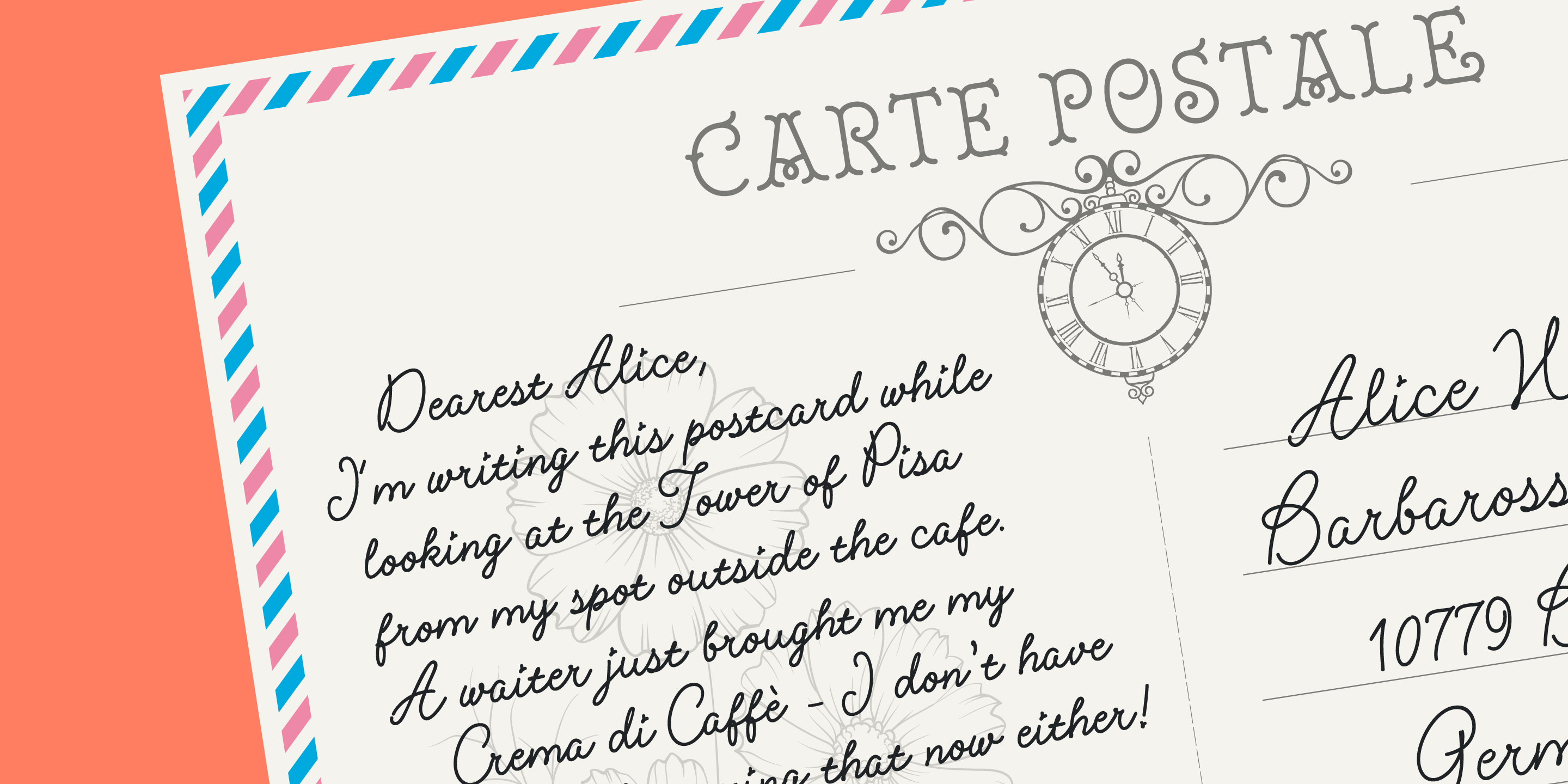 Connected letterforms Illustrate a charming revival of handwriting. With 400 glyphs including alternates, swashes and ending forms, this typeface is perfect to create beautiful decorative custom headlines and wordmarks.