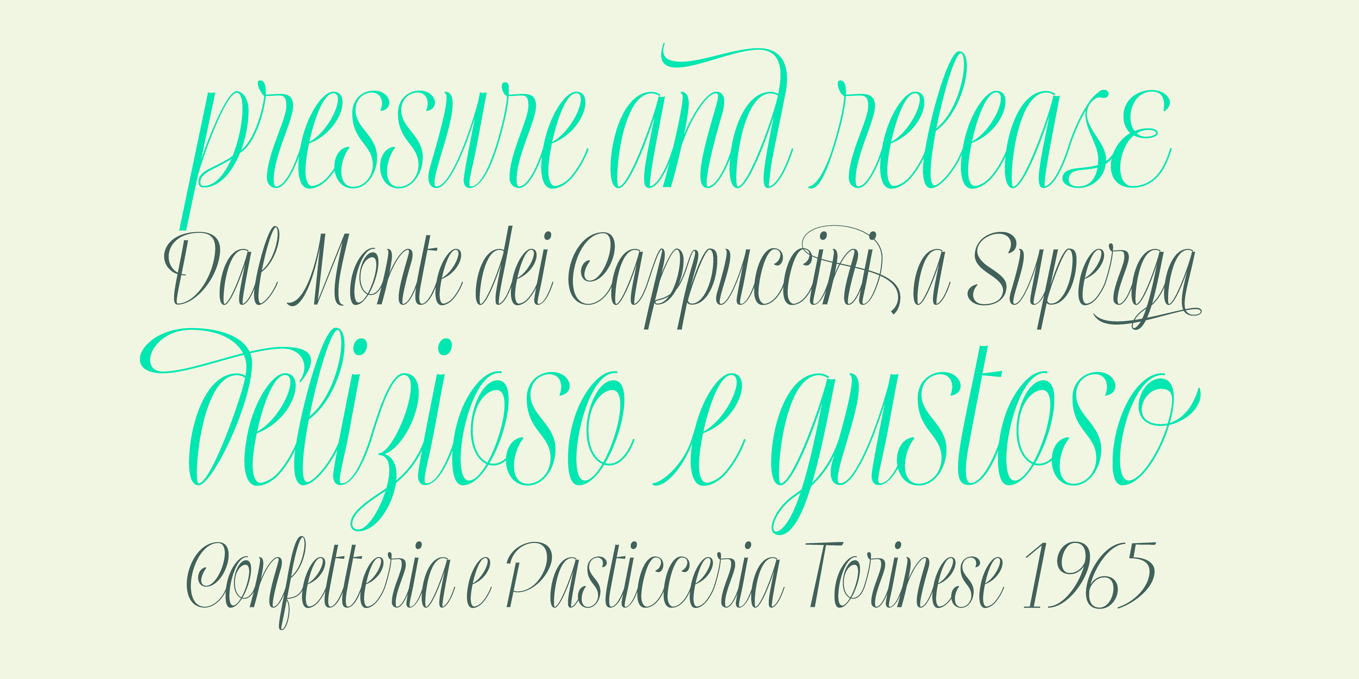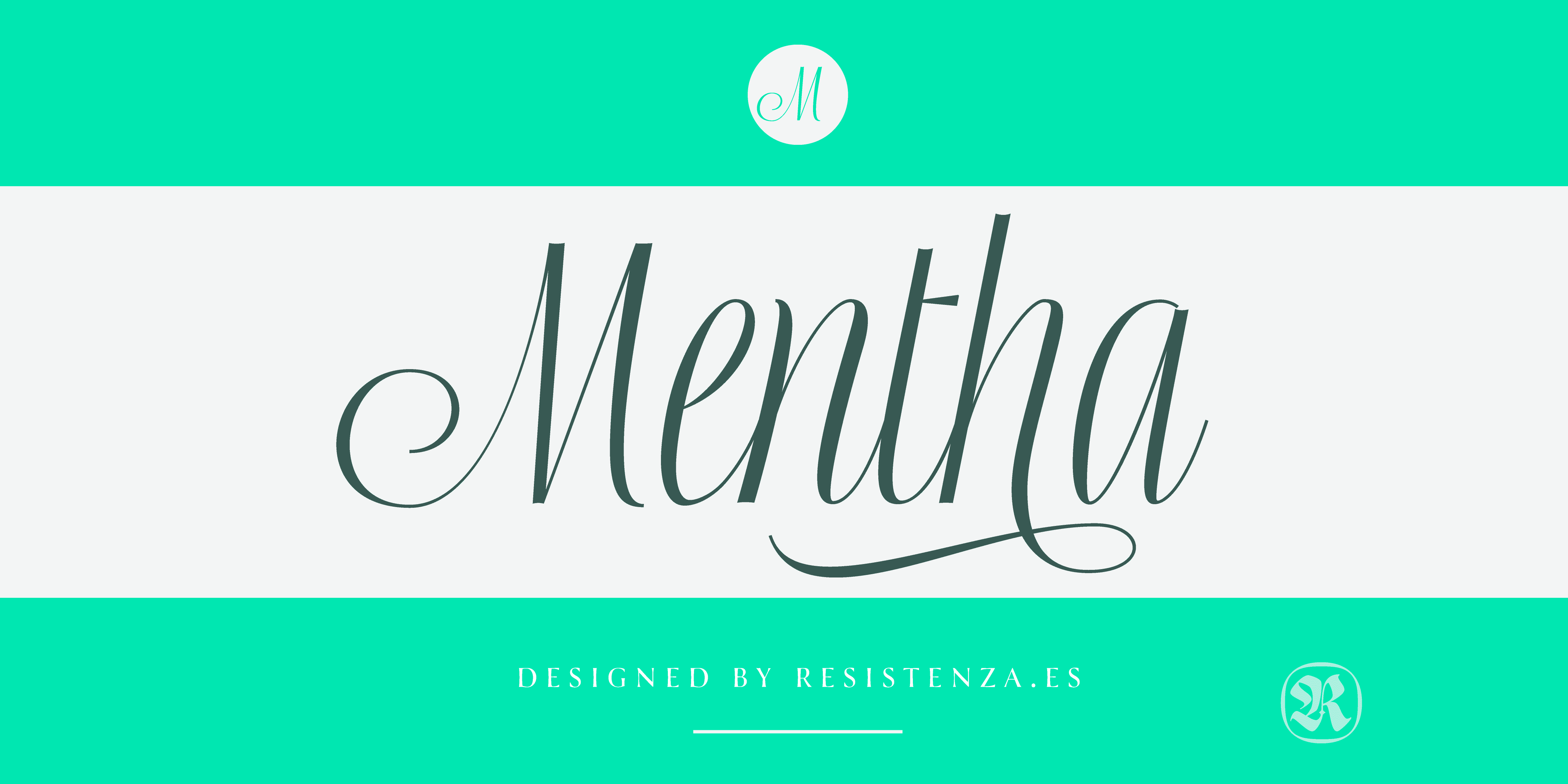 Designed by Resistenza Type FoundryMentha is a very flexible script with a big set of swashes, condensed, strong and with nice loops at the end of some letter shapes. This font script was designed using small brush pens and playing with pressure and release methods. Mentha Medium has a tiny extra stroke, that helps to make this font a bit stronger and solid, specially if you need to use in a very small scale. Mentha is fresh! If you are looking for a new and original script Mentha suits your needs! We recommend to combine Mentha with Turquoise