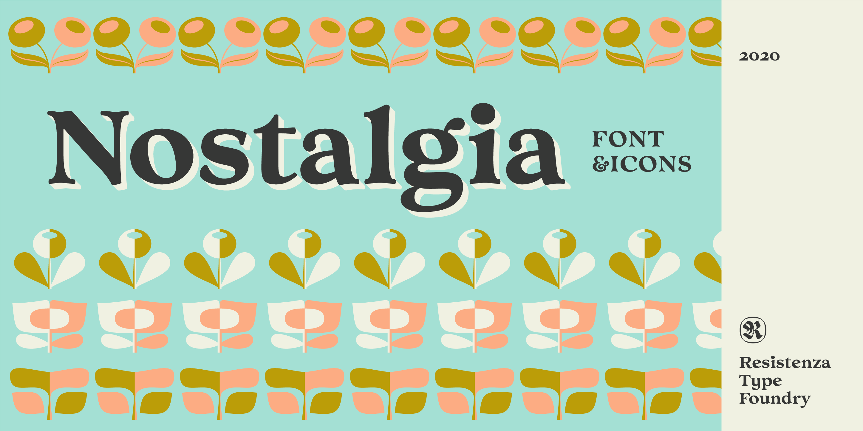 Designed by Resistenza Type FoundryNostalgia is our contemporary interpretation of this beautiful collection of fonts. Our aim is to draw the positive mood of these nostalgic letterforms with softened edges and rounded terminations, to evoke a fresh and contemporary view on this graphic approach.