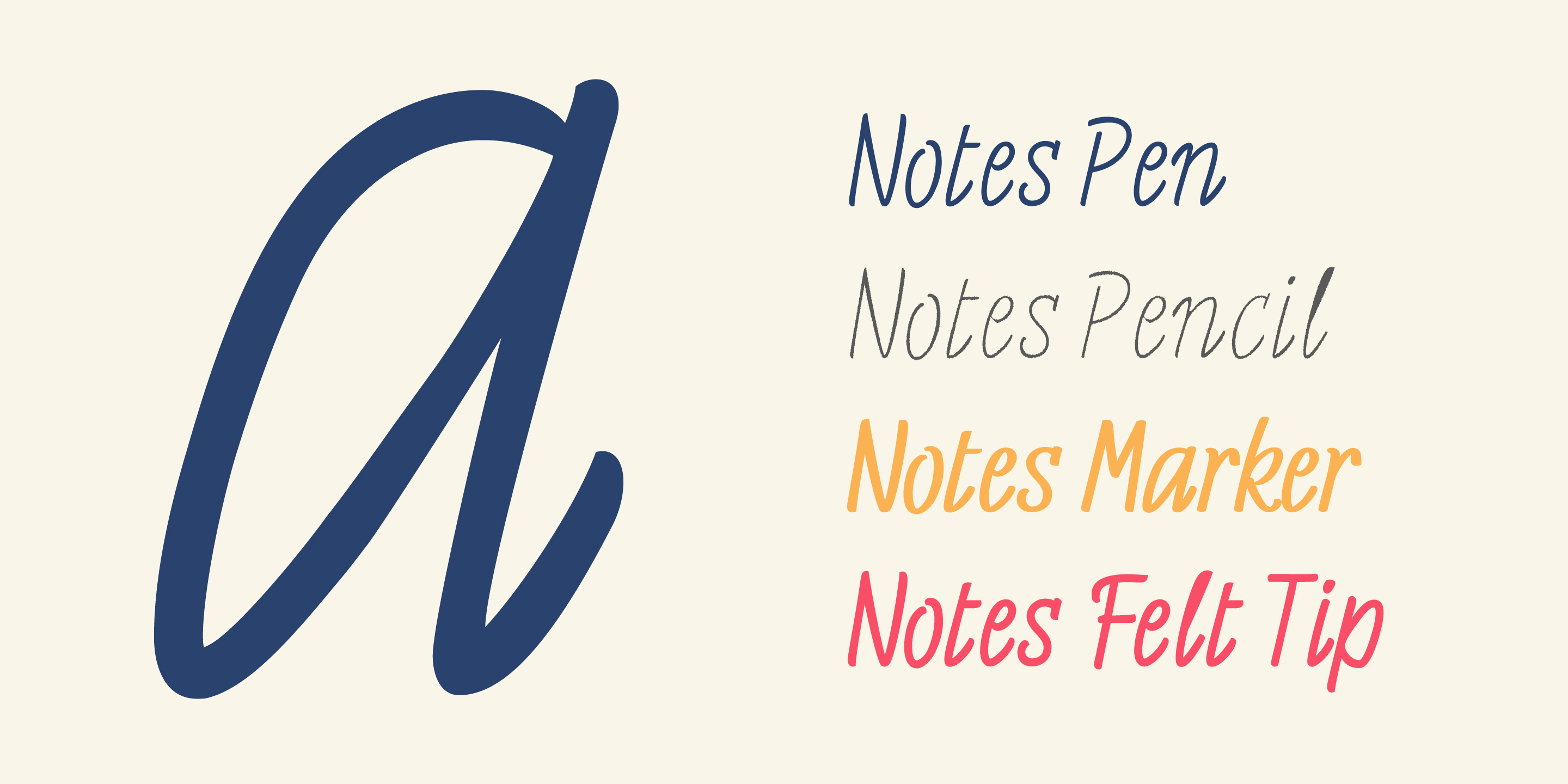 Works well in small sizes and has several ligatures. Notes Family has many cuts, Pen, Pencil, Marker and Felt Tip.