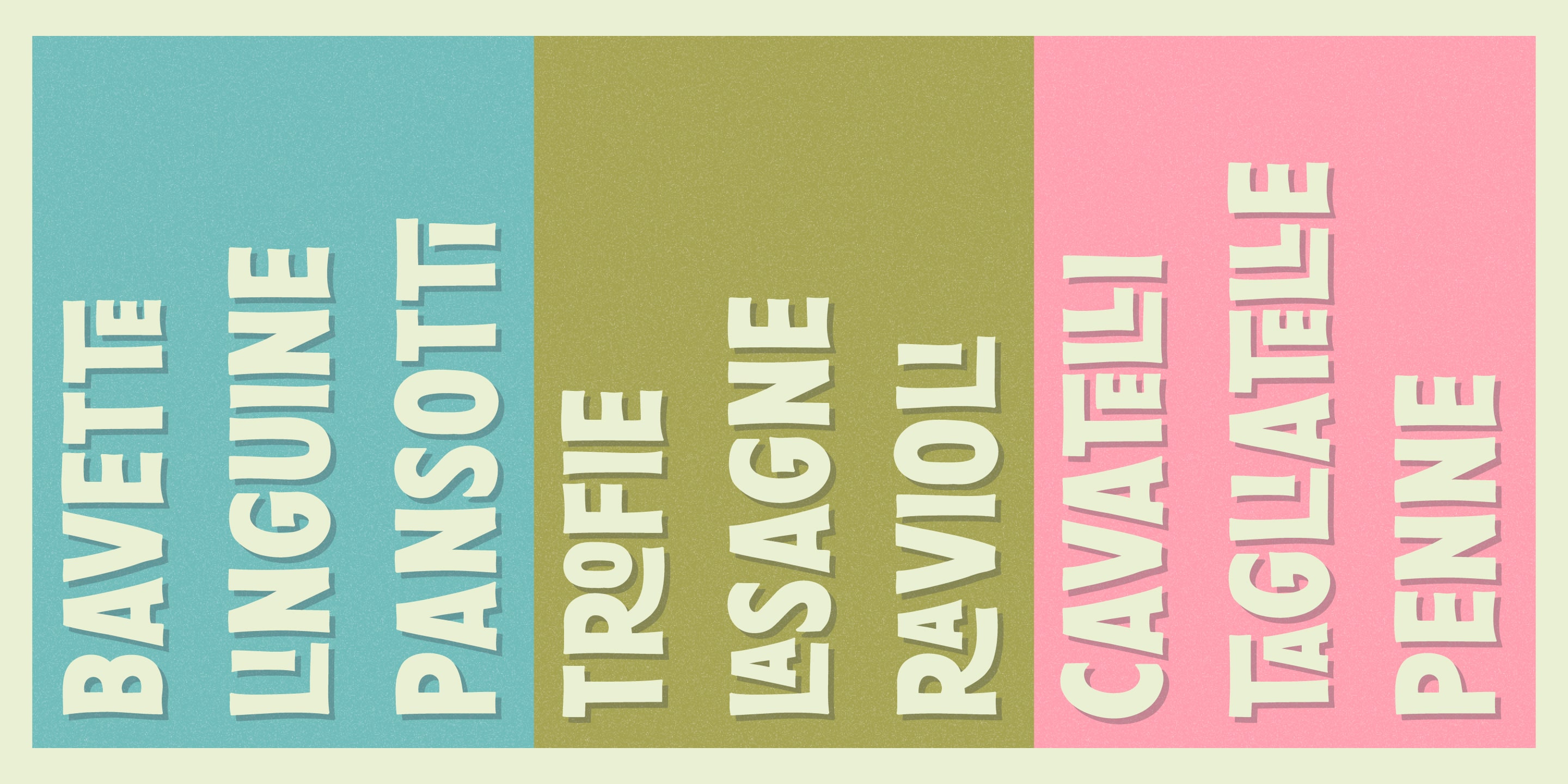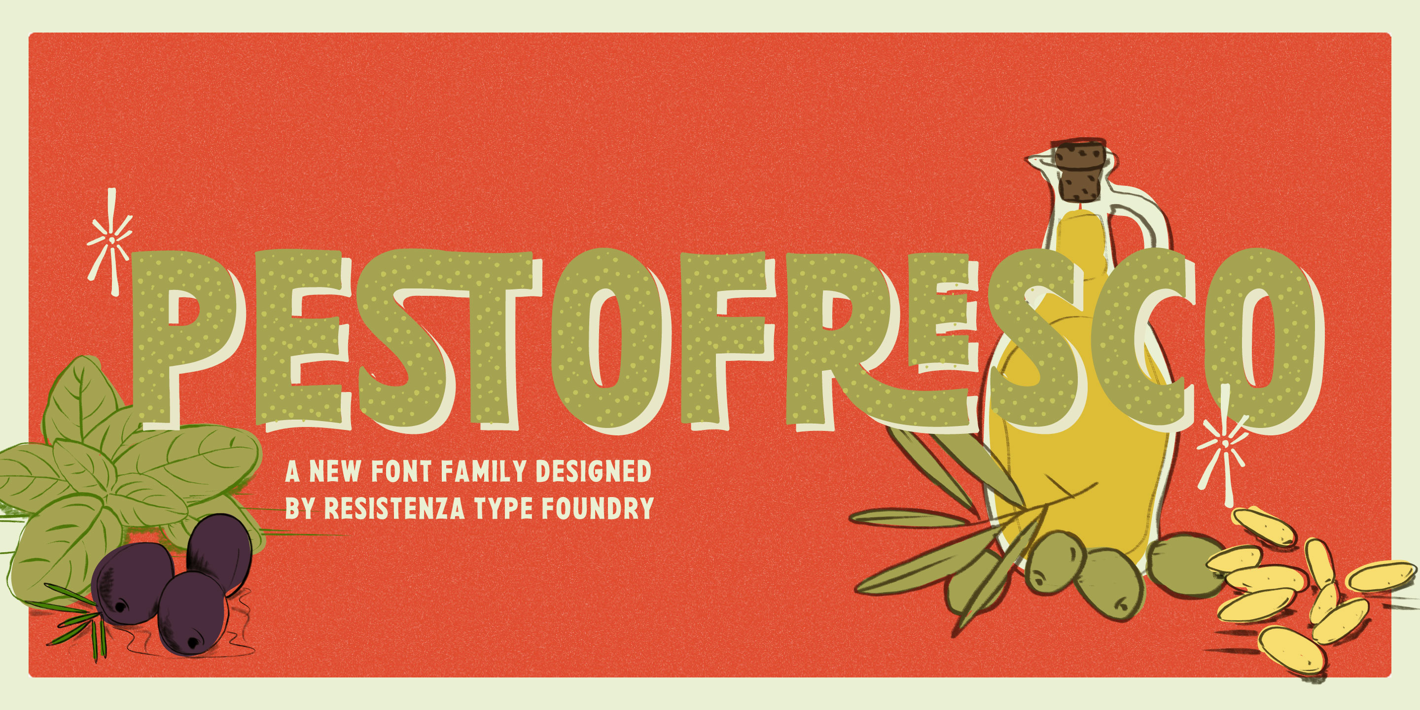 By overlaying Pesto Fresco Regular with any of its decorative counterparts, you can achieve a myriad of graphic effects, allowing you to tailor the typography to suit your specific design needs.