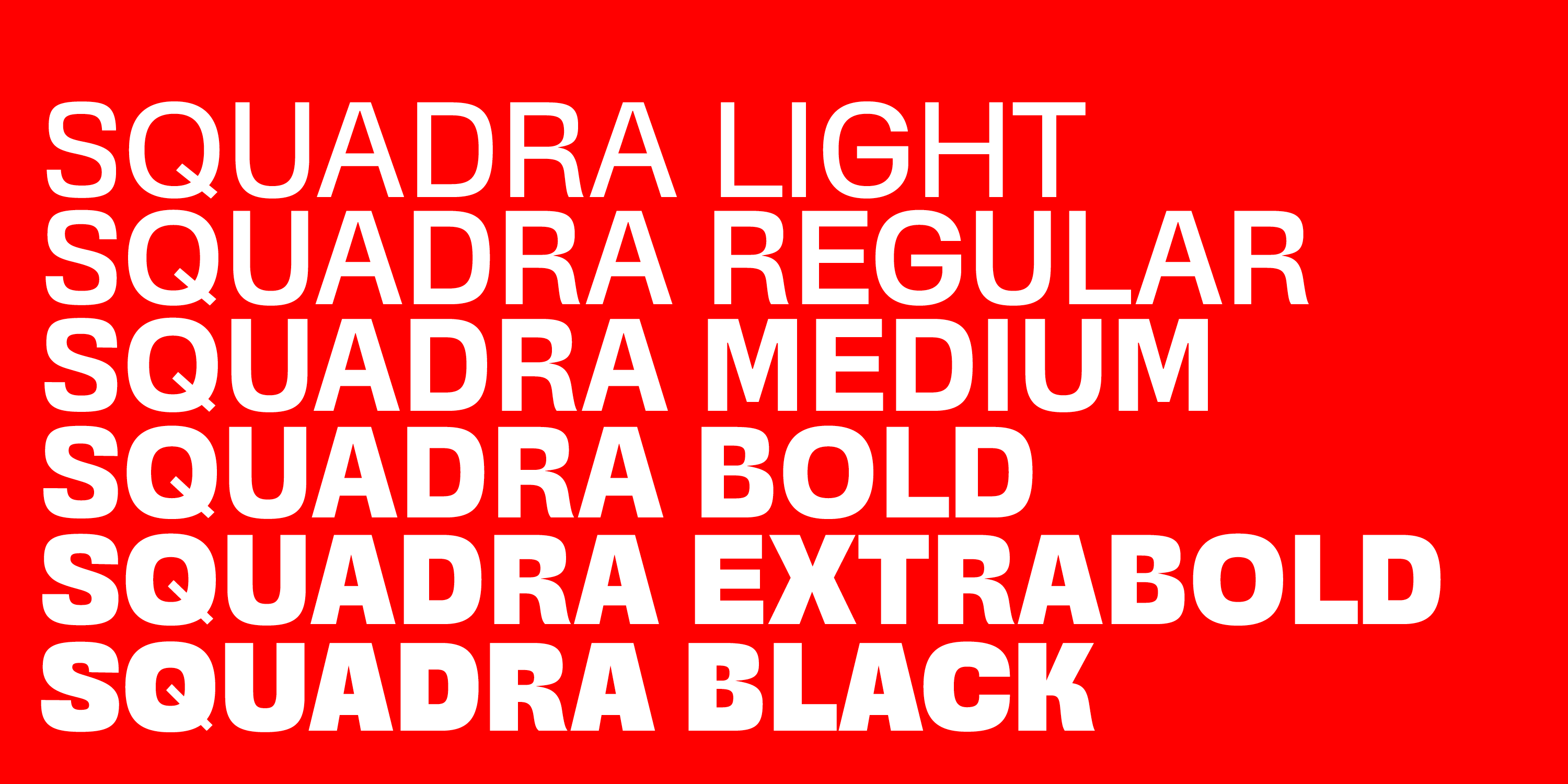 Thin ExtraLight Light Regular Medium SemiBold Bold ExtraBold BlackSquadra Italic