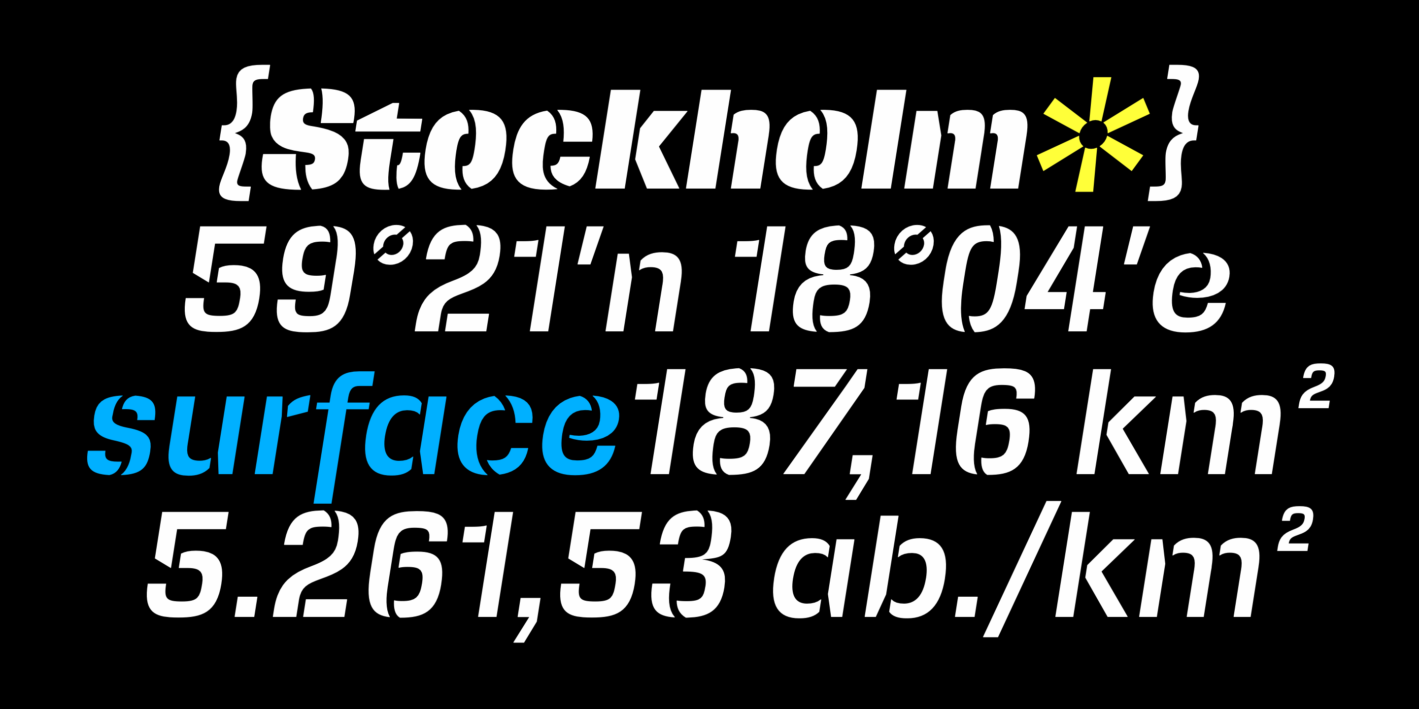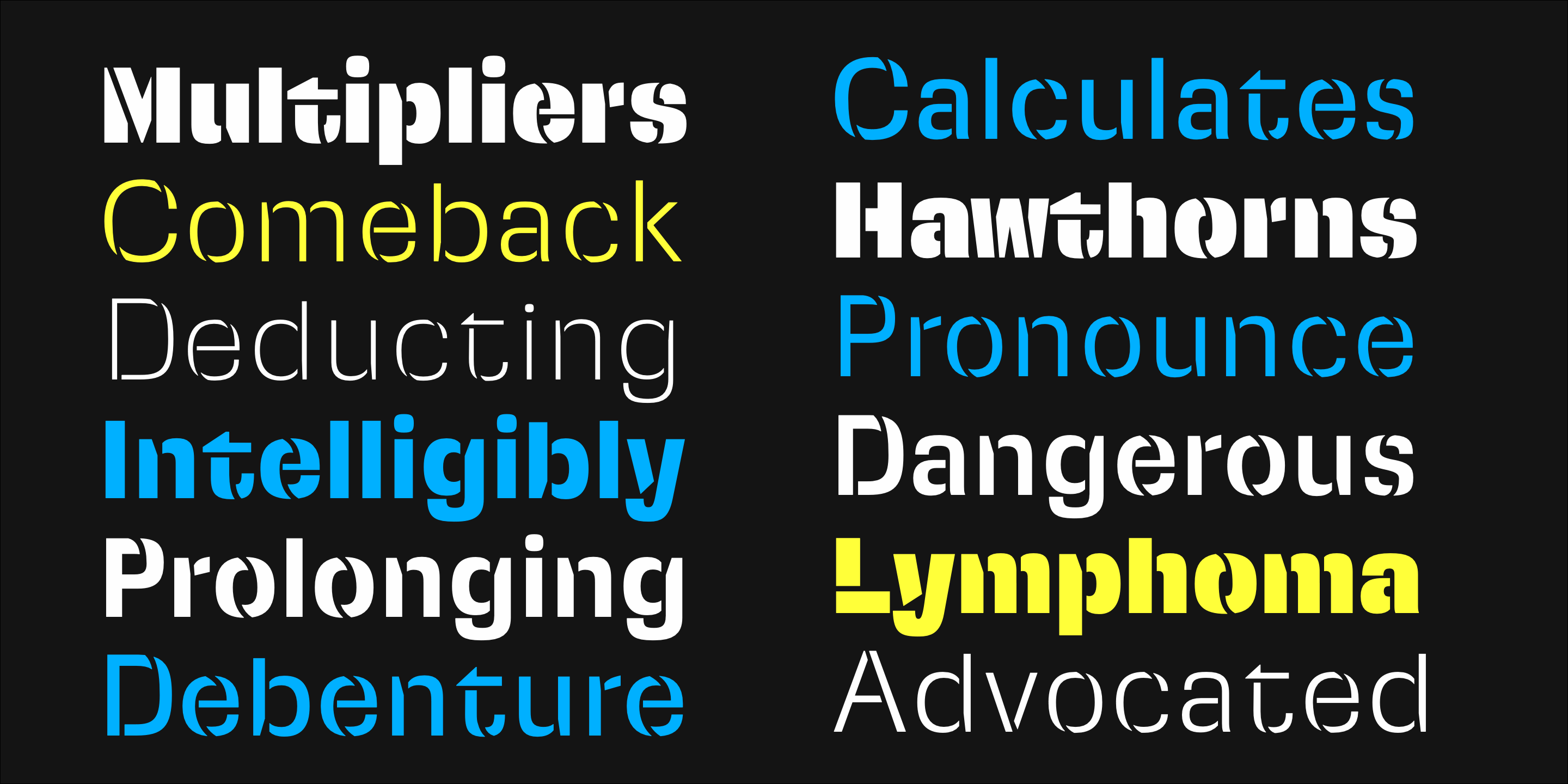 Thin Italic ExtraLight Italic Light Italic Italic Medium Italic SemiBold Italic Bold Italic ExtraBold Italic Black ItalicA stencil, squarish, strong and solid, squad!💪