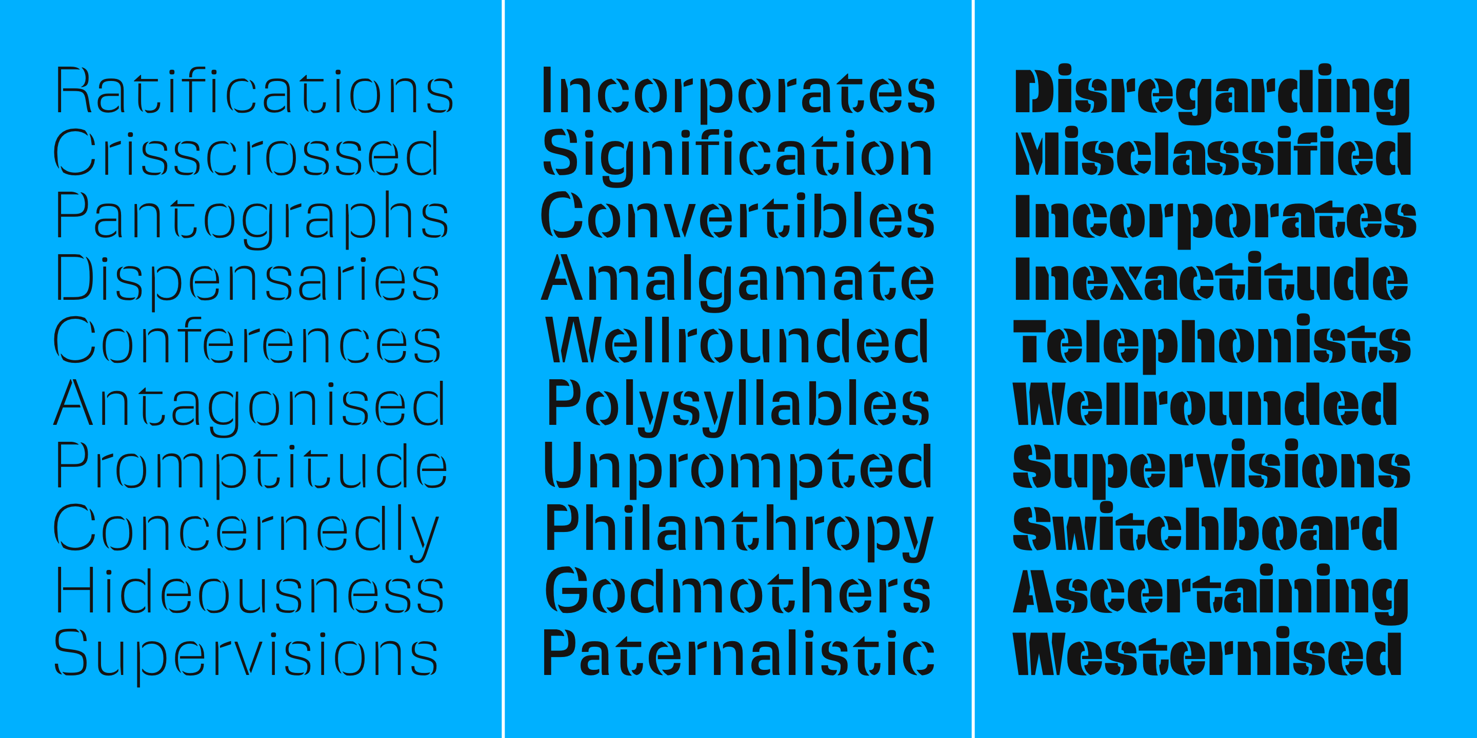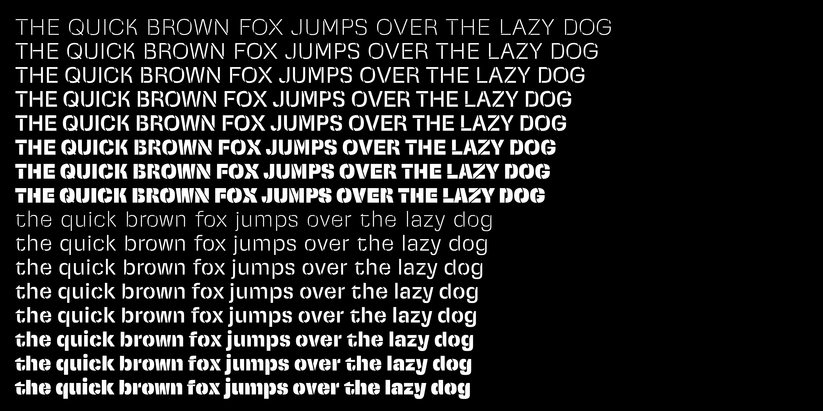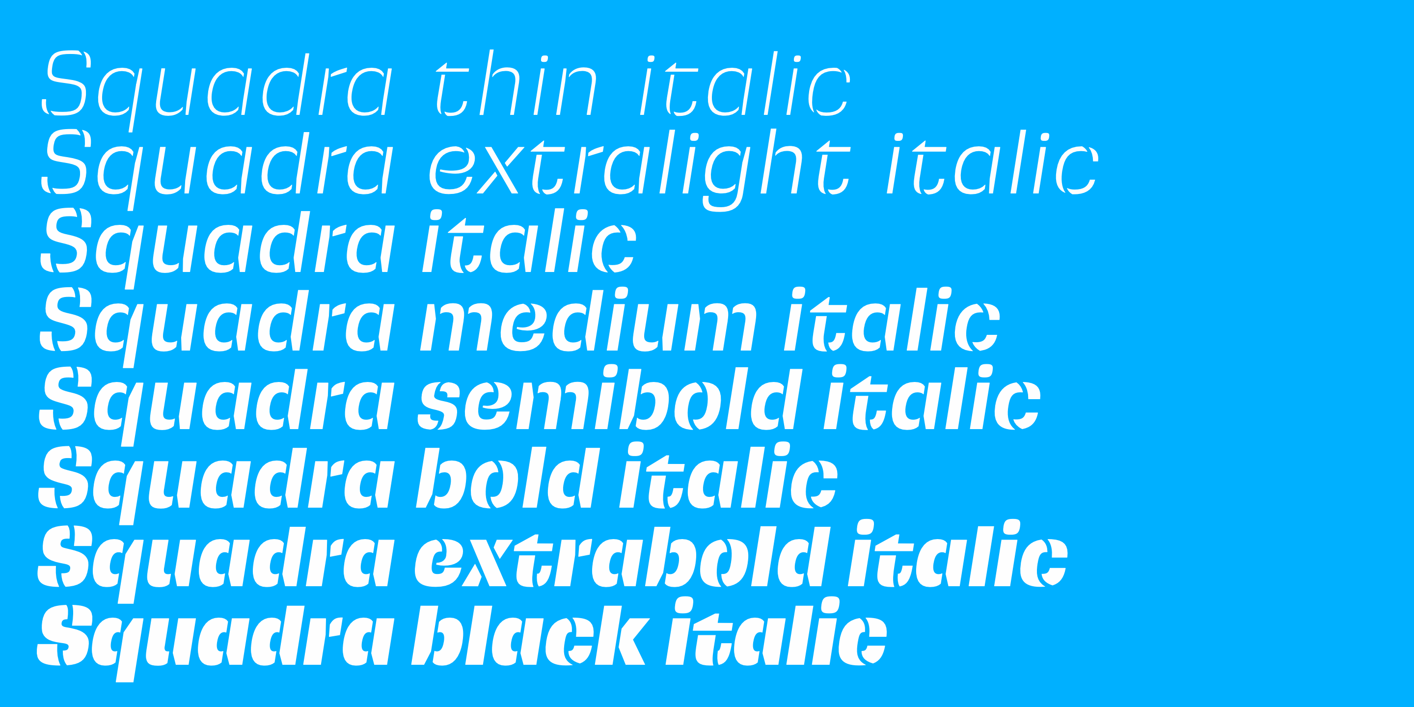 Thin ExtraLight Light Regular Medium SemiBold Bold ExtraBold BlackSquadra Stencil Italic